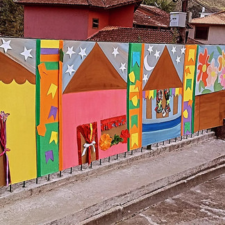 A equipe do Ecomuseu Rural contribuiu com a montagem do cenário do Arraial das Juventudes Rurais da Região Serrana, realizado no Colégio Estadual José Martins da Costa, em São Pedro da Serra. Inspirada nas tradições juninas, a decoração recriou o ambiente festivo típico, com bandeirinhas, fogueira cenográfica e outros elementos que transportaram os participantes para o universo das festas de São João.